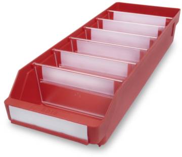Regalkasten - mit Sichtöffnung - Aus bruchfestem Polypropylen - Umweltfreundlich, völlig recyclebar, unzerbrechlich, formbeständig - Temperaturbeständig von -20° bis +80°C - Lebensmittelecht - Physiologisch einwandfrei - Beständig gegen Laugen und Säuren (bitte anfragen) - Kastenmaße abgestimmt auf die gängigen Regalmaße - Steckbare transparente Querteiler für optimale Kasten Unterteilung - passgenau auch bei hoher Beanspruchung durch seitliche Nuten und zusätzliche Fixierung am Boden - Logistikgerechte Etikettierung mit Schutzfolie auf Kästen und Querwänden. Lieferumfang: - Ohne Querteiler. Zubehör (bitte separat bestellen): - Gegen Mehrpreis Auszug-Sperre für das Schrägstellen im Regal - Etiketten mit Schutzfolie - Querteiler. Auf Anfrage: - Elektrisch leitfähige Ausführung (ESD).