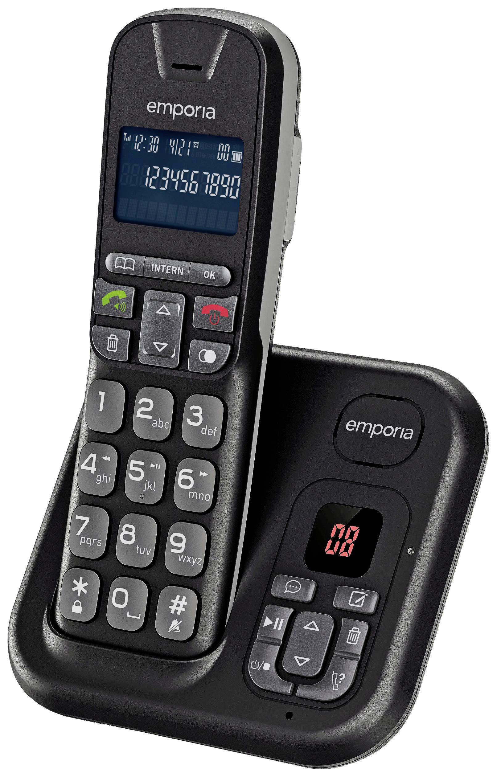 Emporia TH-21AB DECT Schnurloses Telefon analog Anrufbeantworter, Freisprechen, für Hörgeräte kompatibel, mit Basis Schwarz