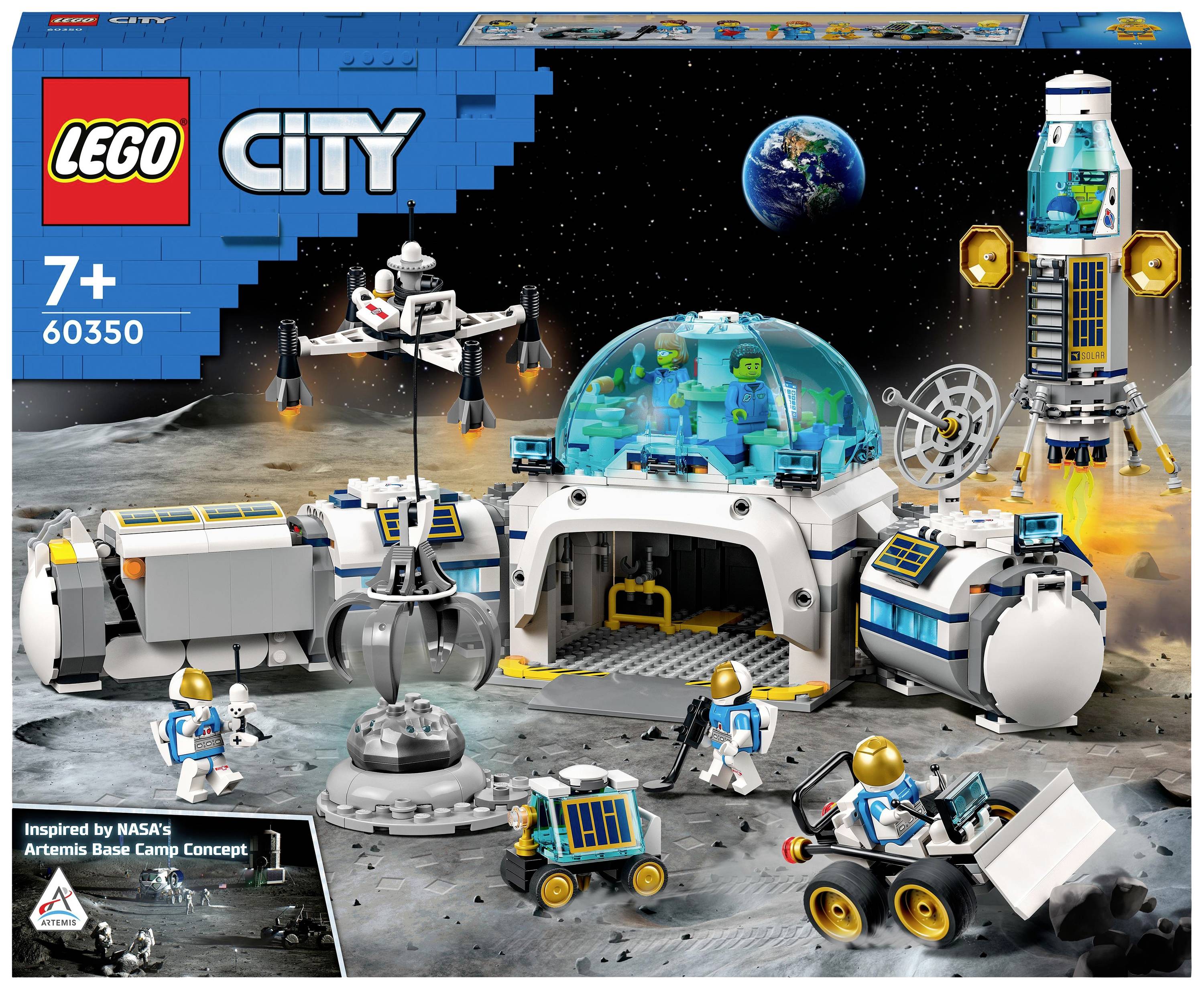 Mit dieser von der NASA inspirierten Weltraum LEGO City Mond-Forschungsbasis (60350) stehen lustige Weltraummissionen bevor. Sie ist vollgepackt mit authentischen Details, die echten Weltraumfahrzeugen und -ausrüstungen nachempfunden sind, darunter eine LEGO NASA Mondlandefähre, ein VIPER-Rover und ein kuppelförmiges Unterkunftsmodul mit Laboren, Garage und Luftschleuse sowie 6 LEGO Astronauten-Minifiguren. Kombiniere die Mond-Forschungsbasis mit anderen Sets aus dem LEGO City Space Spielzeugsortiment für noch mehr Weltraum-Spaß.