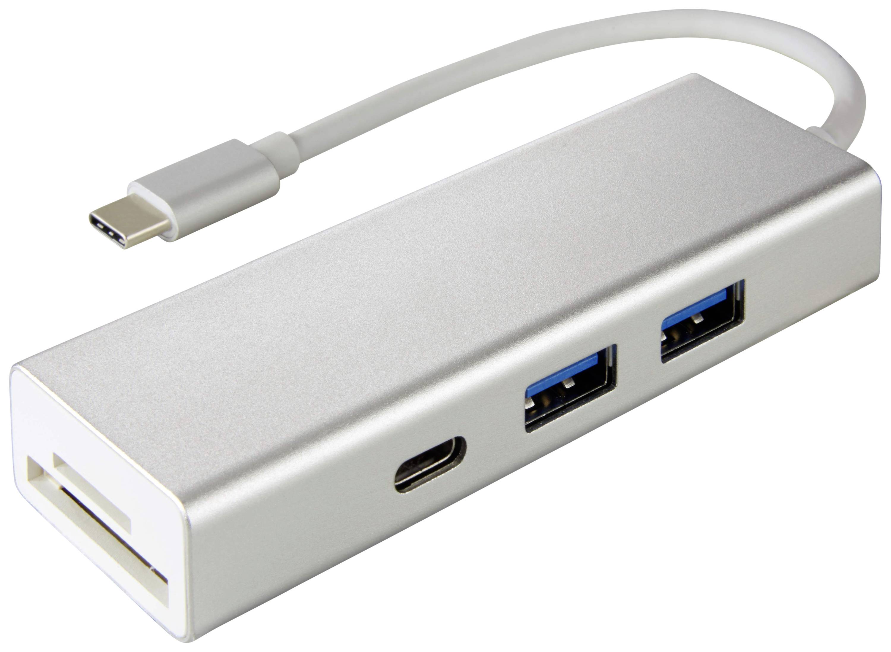 Zum Anschluss von bis zu 3 USB-Geräten sowie zum gleichzeitigen Auslesen und Beschreiben von SD-/microSD-Speicherkarten an einem PC/Notebook/MacBook/Tablet mit USB-C-Anschluss