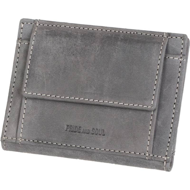 PRIDE&SOUL Kreditkartenbörse mit Münzfach, mit RFID, grau aus Leder, eingearbeitete RFID Folie, Hochformat, 3 Karten-