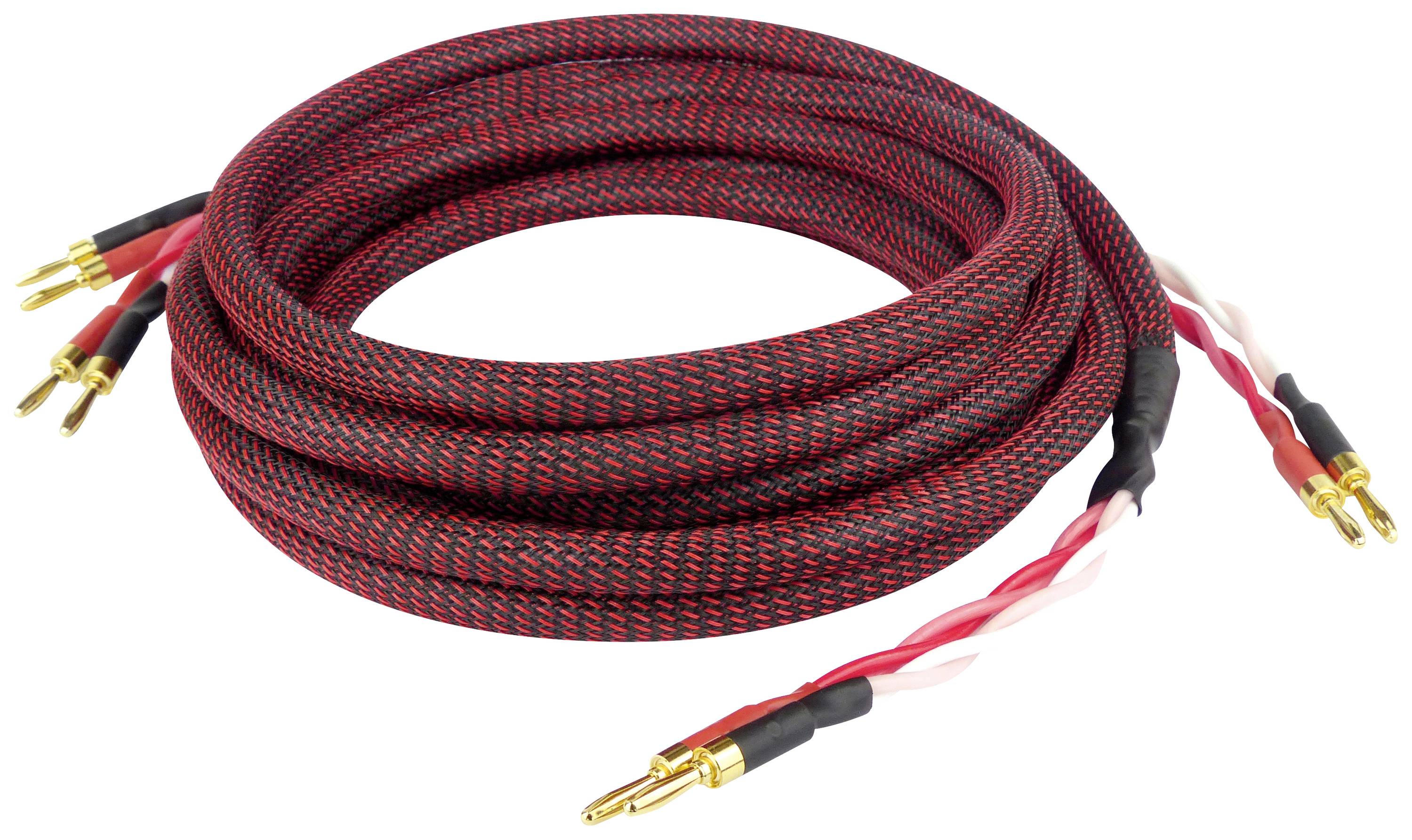 Dynavox Premium Lautsprecherkabel 4 x 2.5 mm² für höchste Auflösung. Innenleiter OFC (99,99% Kupfer), Twinaufbau je 2 Adern je Pol +/-. Leiteraufbau jeweils 50 x 0.25 mm, Kabeldurchmesser ca. 12 mm, Adern-Querschnitt 2,5 mm², Nylonaußengeflecht schwarz / rot zum Schutz vor mechanischen Belastungen. Verlustarme PE-Isolation mit zusätzlichem PE-Stützelement. Hochwertige Bananenstecker für festen Halt und beste Übertragung.