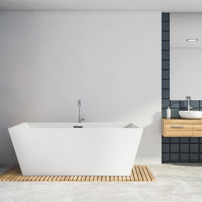 Oceanic Freistehende Badewanne - Aus echtem Qualitätsacryl - Oberfläche: glänzend - Moderner Stil - Monobloc rechteckige Badewanne - Maße (LxBxH): 170x80x59 cm - Das Becken fasst bis zu 297 Liter - Manuelle Entleerung - Druckknopf-Ablauf aus Edelstahl - 4 verstellbar Höhe Füße enthalten