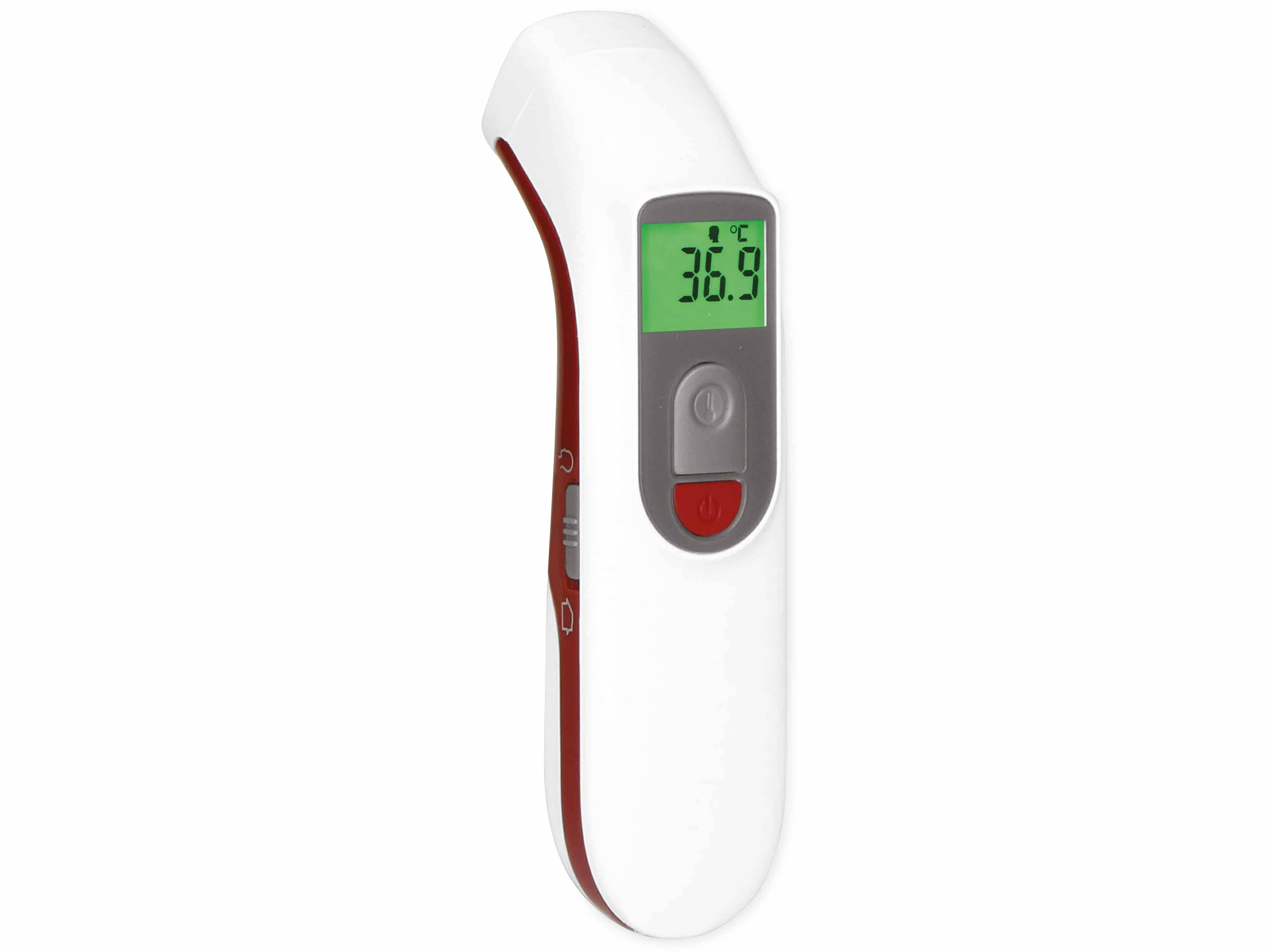 Das Infrarot-Thermometer hat ein schlankes Design, mit nur einer Taste und einem übersichtlichen Display. Unter diesem klaren Design verbirgt sich eine Reihe von intelligenten Funktionen. Nicht nur das Fiebermessgerät mit Anzeige in Grad Celsius, Grad Fahrenheit und einer Farbe (rot oder grün), sondern auch ein Thermometer zum Messen der Temperatur von Flüssigkeiten und Oberflächen. Features: - Genaue Fiebermessung auf der Stirn - Akustischer und optischer Fieberalarm - Messergebnis innerhalb 3 Sekunden - Automatische Speicherung der letzten 25 gemessenen Ergebnisse - 1 Knopf, einfach zu bedienen - Zusätzliche Funktion: Temperaturmessung von Oberflächen und Flüssigkeiten - Display mit Hintergrundbeleuchtung Technische Daten: - Stromversorgung: 2x AAA Batterien (im Lieferumfang enthalten) - Temperatureinheit: °C und °F - Messbereich Körper: 32…43 °C (89,6…109,4 °F) - Messbereich Gegenstand: 0…100 °C (32…212 °F) - Gewicht: 73 g (ohne Batterien) - Maße: 168x54x44 mm Lieferumfang: - 1x Stirnthermometer - 2x Batterien AAA - 1x Bedienungsanleitung
