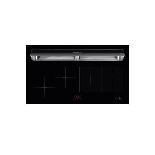 FlexX-Induktion mit Kochfeldabzug Umluft rahmenlos, Touch-Control-Bedienung, Kindersicherung, Überlaufschutz, Überhitzungsschutz, Restwärmeanzeige, Betriebsdauerbegrenzung, Display-Anzeigen rot, 10 Leistungsstufen je Kochzone (9 Kochstufen, 1 Boosterstufe), 4-fach Booster, 1 Doppel-Booster (Mitte rechts), 4-fach Timer (max. je 99 Minuten), Kurzzeitwecker, Brückenschaltung, Ausstattungsmerkmale Abluftmodul: Energie-Effizienzklasse B, 7-Segment-Anzeige rot, Absaugklappe schließt flächenbündig mit Glaskeramik ab, Automatisches Motor-Stopp-System bei geschlossener Absaugklappe, Nachlaufautomatik, Kindersicherung, Fettfilterreinigungsanzeige, 2 teiliger Metallfettfilter innenliegend und spülmaschinengeeignet