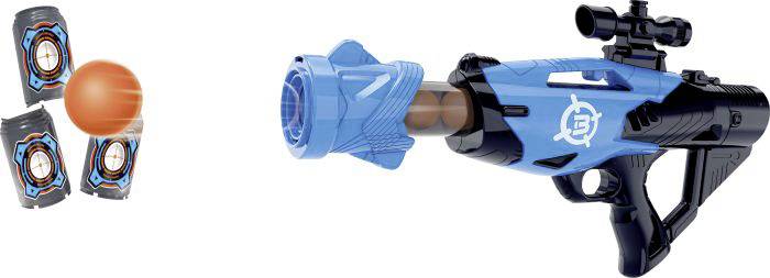 Outdoor active Schaumstoff-Ball Blaster in Blau. Inklusive 12 Bälle und 3 Zielscheiben. Schussweite ca. 3 bis 4 Meter. Maße ca. 41x5,5x20,5 cm. Für Kinder ab 6 Jahren.