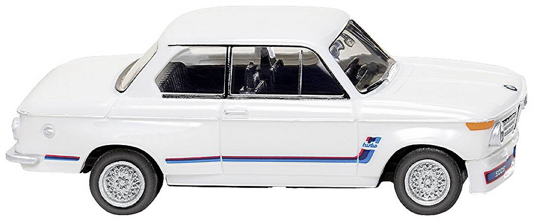Schneeweißer Lack und die dezenten Motorsportfarben Blau, Violett und Rot an den Flanken und am Spoiler – so fährt der BMW 2002 turbo bei WIKING vor. Natürlich die Lettern des „2002 turbo“ in das Rennfinishing integriert. Die Gestaltung geht auf den damaligen BMW-Rennsportleiter Jochen Neerpasch, Interieur-Designer Wolfgang Seehaus und Exterieur-Designer Manfred Rennen zurück. In diesen Farben ging 1972 die Rennsportabteilung als BMW M GmbH als eigenständiger Unternehmensbereich nach vorn. So galt der „02er“ als sportlich und schön zugleich. Wer rasantes Image beweisen wollte, der war Ende der 1960er-Jahre mit dem BMW 2002 bestens bedient. WIKING stellt den Klassiker, der einst stolze 100 PS auf die Straße brachte, farbaktualisiert in der Rennversion vor. Der Zweitürer verfügt als 1:87-Modell natürlich über die damals typischen runden Rückleuchten. Die ursprüngliche BMW-Baureihe 114, die bei Autofreunden als BMW-02-Serie bekannt wurde, lief seit 1966 vom Band.