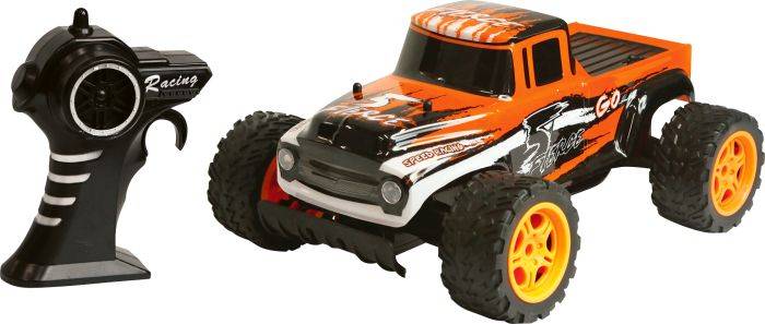 Racer R/C Pick-Up XL, 2.4GHz. Maßstab 1:14. Mit Licht. Distanz ca. 30 Meter. Geschwindigkeit ca 11 km/h Inklusive 7xAA Batterien. Maße ca. 27,5x21x14 cm. Für Kinder ab 5 Jahren.