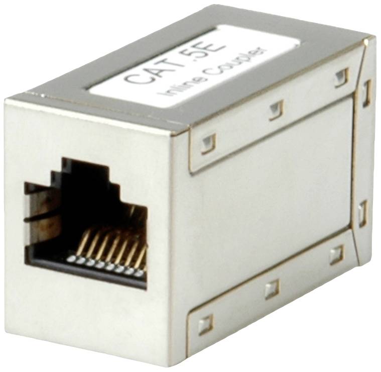 Durchführungskupplung zur Verbindung, Kopplung bzw. Verlängerung von RJ-45 Netzwerkkabeln Geschirmte RJ-45 Kupplung zum Verlängern von Twisted Pair Kabeln Geeignet für Kat.5e Verkabelungen Gesamtes Gehäuse aus Metall zum Schutz der Signale gegen elektromagnetische Einstreuung Besonders gute Übertragungseigenschaften bei Pin-Belegung 1, 2 und 3, 6 (gilt für Ethernet und Fast Ethernet) 8 Kontakte, 1:1 verbunden