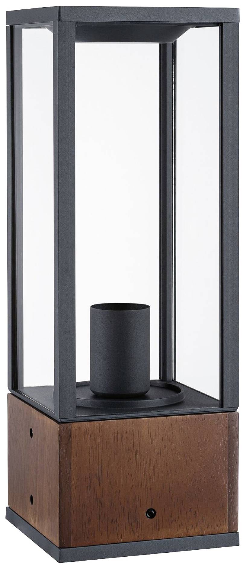 Mit dem stilvollen Mix aus Schwarz und Holz ist das Lichtobjekt Timba mit einer Höhe von 40 cm ein echter Blickfang für den Außenbereich. Es strahlt sowohl Eleganz als auch Modernität aus und bringt stimmungsvolles Licht als Gehwegbeleuchtung, im Garten oder auf der Terrasse. Dank Spritzwasserschutz ist die Leuchte ideal für die Installation im Außenbereich geeignet.