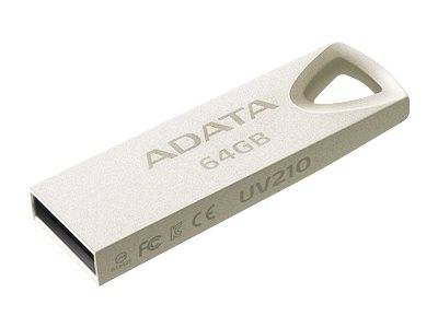 ADATA 64GB UV210. Kapazität: 64 GB, Geräteschnittstelle: USB Typ-A, USB-Version: 2.0. Formfaktor: Ohne Deckel. Gewicht: 6 g. Produktfarbe: Silber