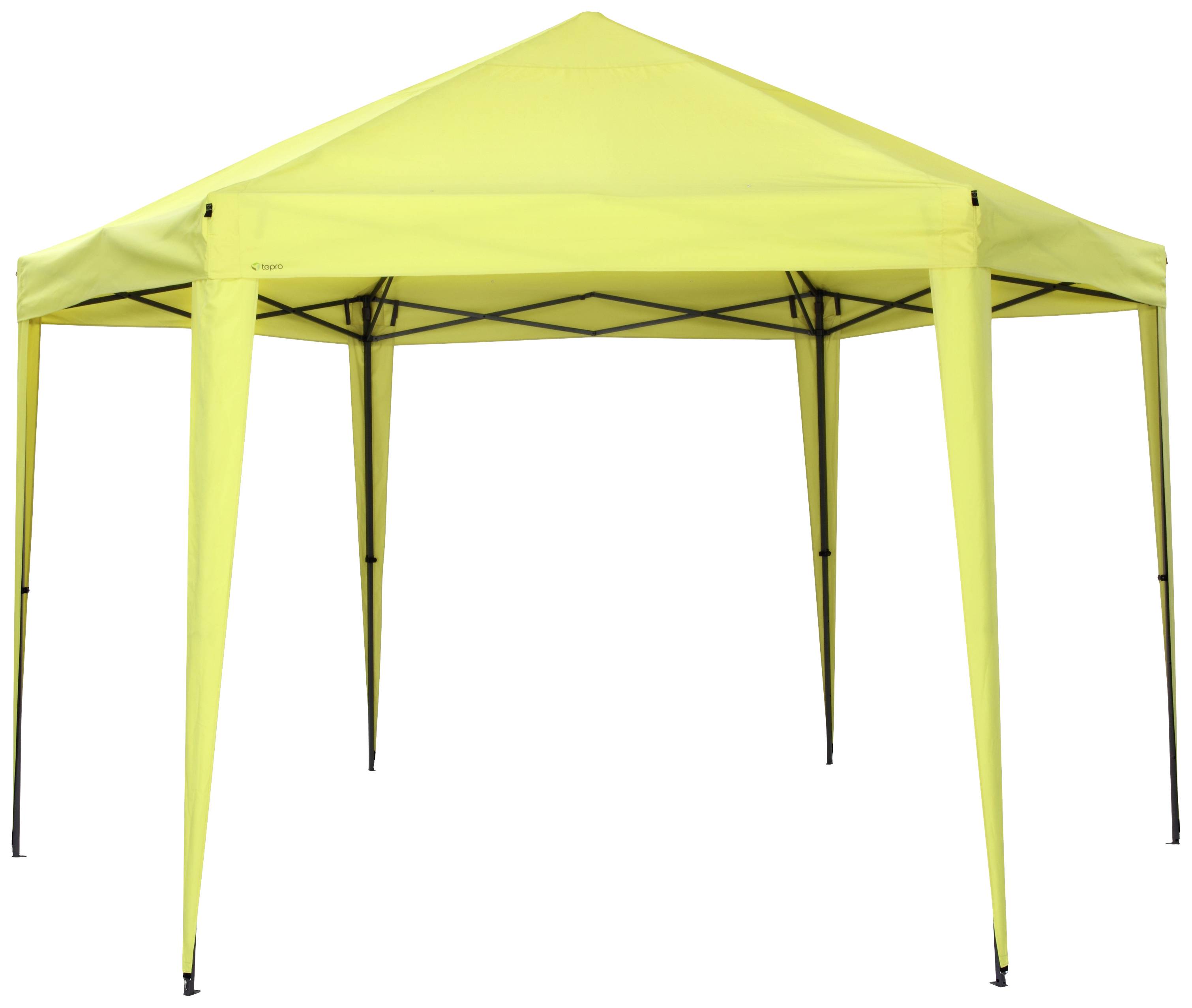 Egal ob auf dem Campingplatz, dem Wochenmarkt, auf Messen oder anderen Veranstaltungen unter freiem Himmel. Mit dem mobilen Hexagon-Faltpavillon „Aruba“ von tepro haben Sie einen schattenspendenden und wasserabweisenden Schutz immer dabei. Der einfache Aufbau erfolgt im Handumdrehen durch den zentralen Drückmechanismus. Die besondere Form des Hexagon-Faltpavillon hat einen Durchmesser von ca. 4 m, wodurch sich eine besonders große Nutzfläche unter dem Pavillon ergibt. Das Dachtextil hat einige praktische Eigenschaften, wie eine wasserabweisende, feuerhemmende Beschichtung und UV80+ UV Schutz. Hierdurch entsteht ein besonders guter Schutz vor jeglichen Wettereinflüssen. Nach dem Einsatz ist der Pavillon schnell wieder abgebaut und in die praktische Tasche mit Rollen gepackt. Dadurch ist ein unkomplizierter Transport des Pavillons möglich, außerdem nimmt der Pavillon „Aruba“ eingepackt wenig Stauraum in Anspruch und kann bei Bedarf jederzeit wieder eingesetzt werden.
