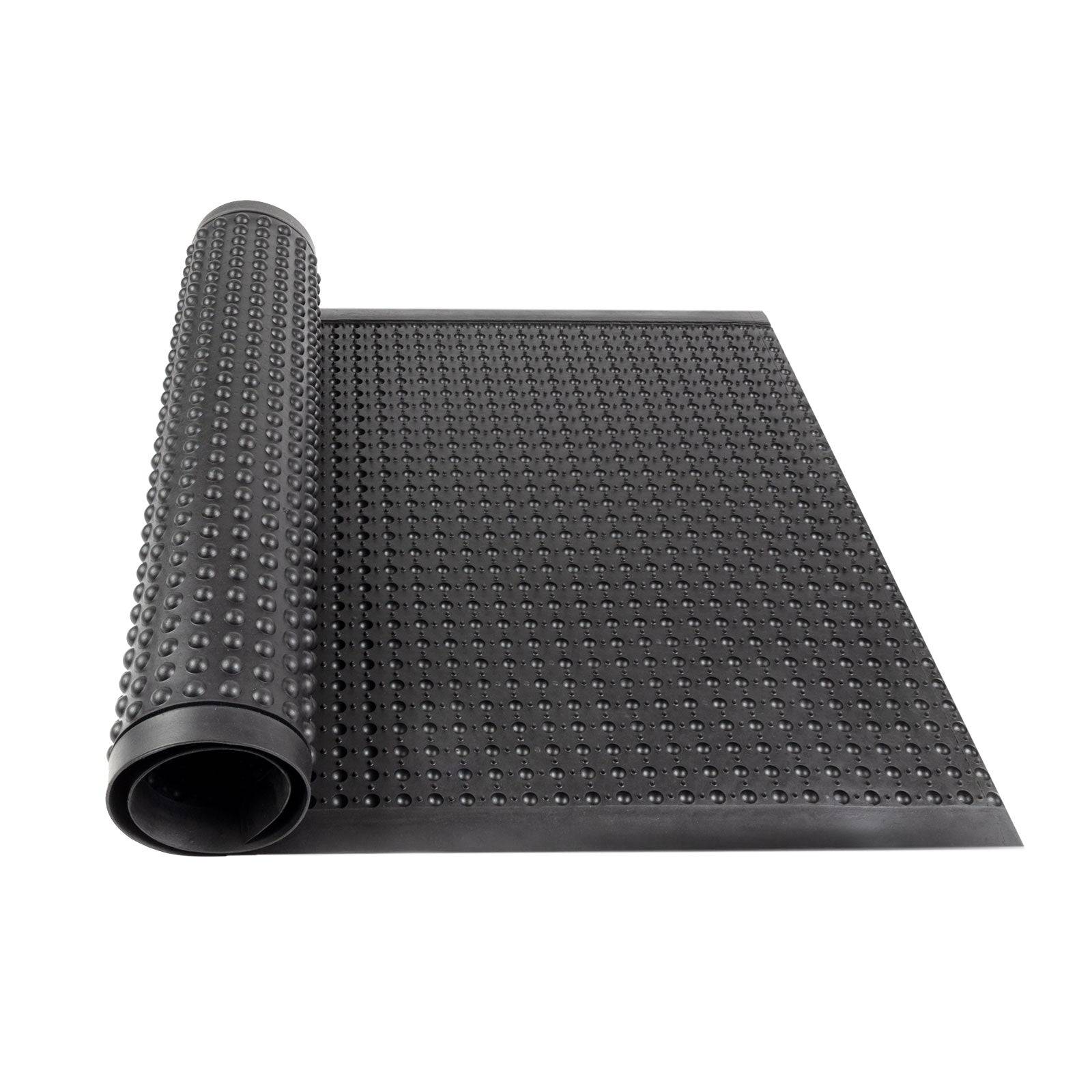Die wetterbeständige Arbeitsmatte „Bubble“ aus 100% Naturgummi ist ein echtes Multitalent und ist sehr vielseitig einsetzbar. Die Noppenmatte hat eine stoß- und geräuschdämpfende Wirkung, ist allergen- und geruchsfrei sowie wasserfest und daher resistent gegenüber Nässe. Dank dieser Eigenschaften bietet sich die Gummimatte mit Noppenstruktur ideal als Arbeitsplatzmatte für innen und außen an und erhöht die Sicherheit, den Komfort sowie die Ergonomie am Arbeitsplatz. Ihre elastische Oberfläche absorbiert die Bewegungsenergie und macht langes Stehen erheblich angenehmer.