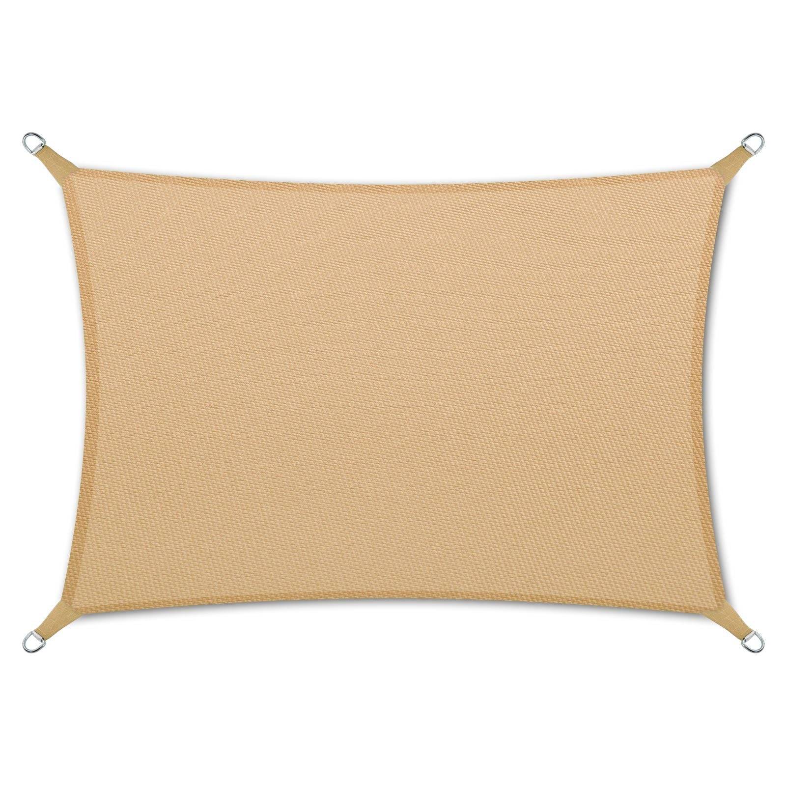 Das in vielen frischen Farben und Größen erhältliche Sonnenschutzsegel eignet sich dank seiner großzügigen Maße auch für größere Flächen. Sein strapazierfähiges Gewebe schützt Sie und Ihre Terrassenmöbel auch bei leichten Niederschlägen. Für festen und sicheren Halt sorgen die mitgelieferten Befestigungsschnüre zusammen mit den äußerst stabilen Ösen an den Ecken des Sonnensegels.