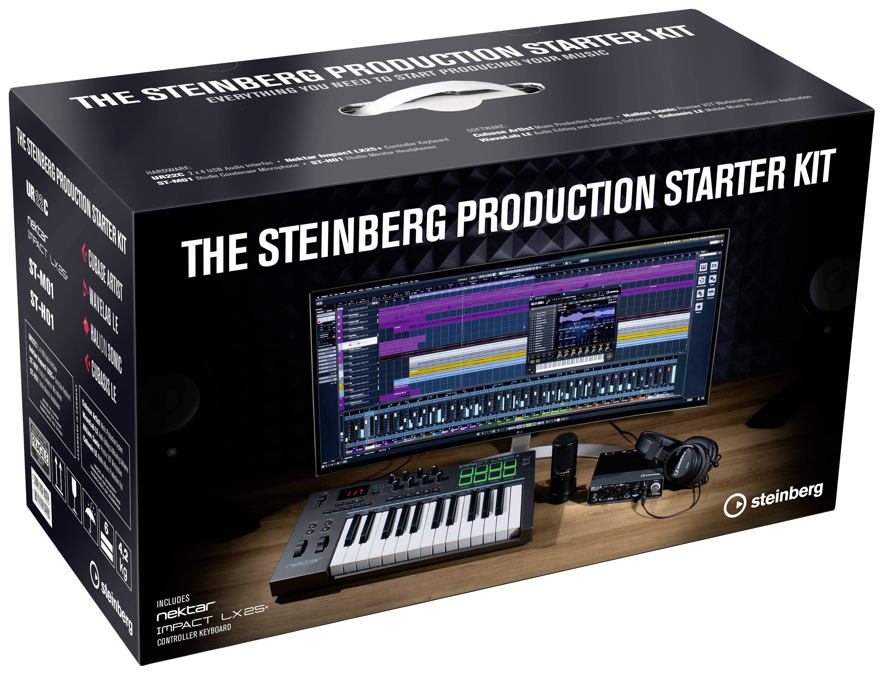 Das Steinberg Production Starter Kit bietet dir alles, was du brauchst, um sofort auf deinem iPad oder Computer mit der Aufnahme und Produktion deiner Musik zu beginnen. Dieses Paket enthält alles, was du an Software und Hardware benötigst, um auf deinem Mac, PC oder iPad in Studio-Qualität aufzunehmen und professionell klingende Songs zu produzieren. Nimm Gesang, Gitarre, Bass oder jedes andere Instrument mit deinem Computer auf und produziere, mische und mastere auf Profi-Niveau, um das Beste aus deinen Aufnahmen rauszuholen.