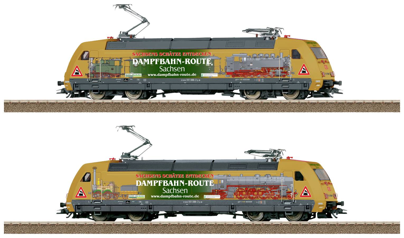 Dampfbahn-Route Sachsen 101 088 wirbt seit Ende November 2021 für die Dampfbahn-Route Sachsen. Auf Ihren Seiten präsentiert sie neben der Saxonia und Sachsenstolz auch Fahrzeuge der sächsischen Schmalspurbahnen. Vorbild: Schnellzuglokomotive Baureihe 101 der Deutschen Bahn AG (DB AG). Werbegestaltung Dampfbahn-Route Sachsen. Betriebsnummer 101 088-3. Betriebszustand 2022.