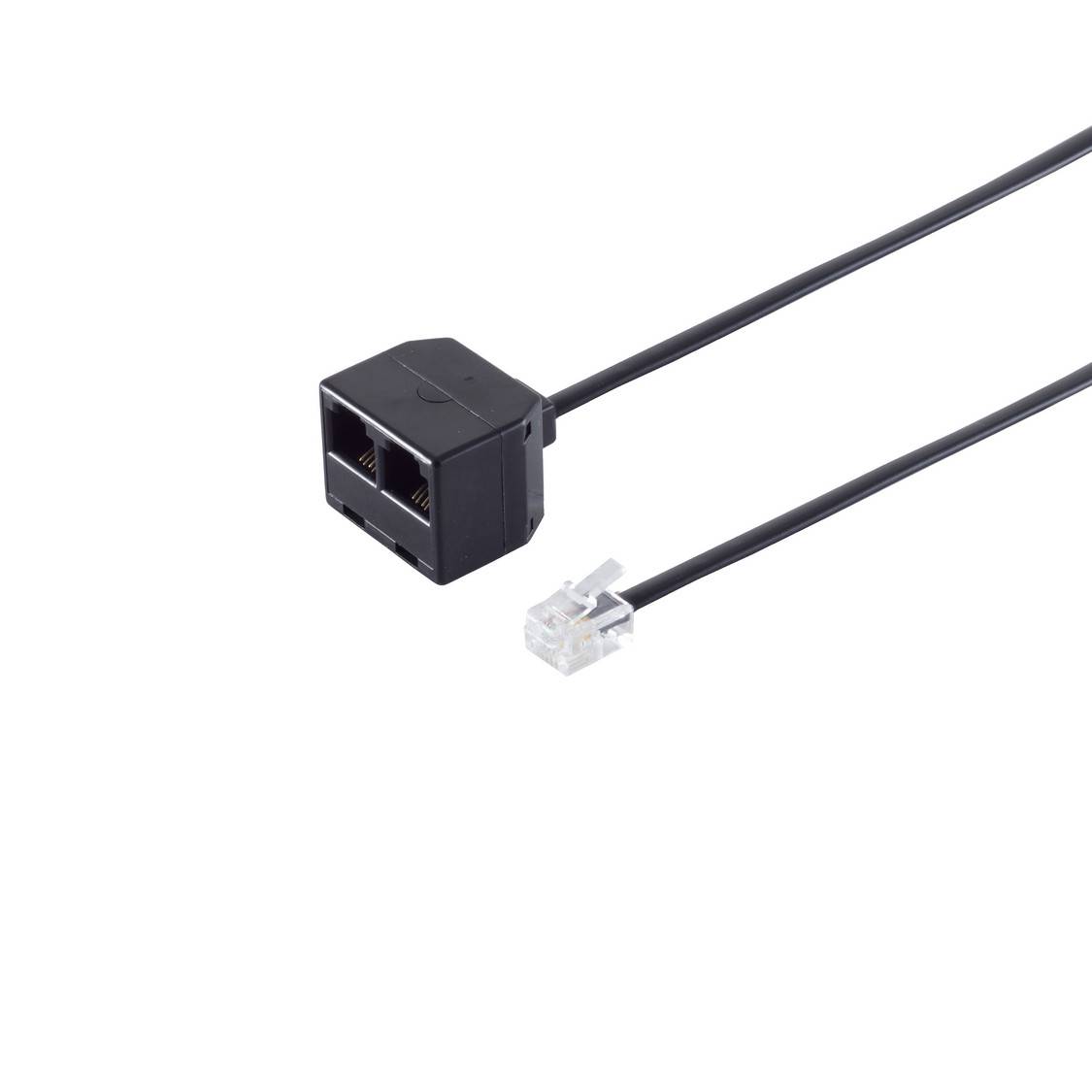 - Vielseitige Verbindungsmöglichkeiten: Ein RJ11 6/4 Stecker auf zwei RJ11 6/4 Kupplungen.