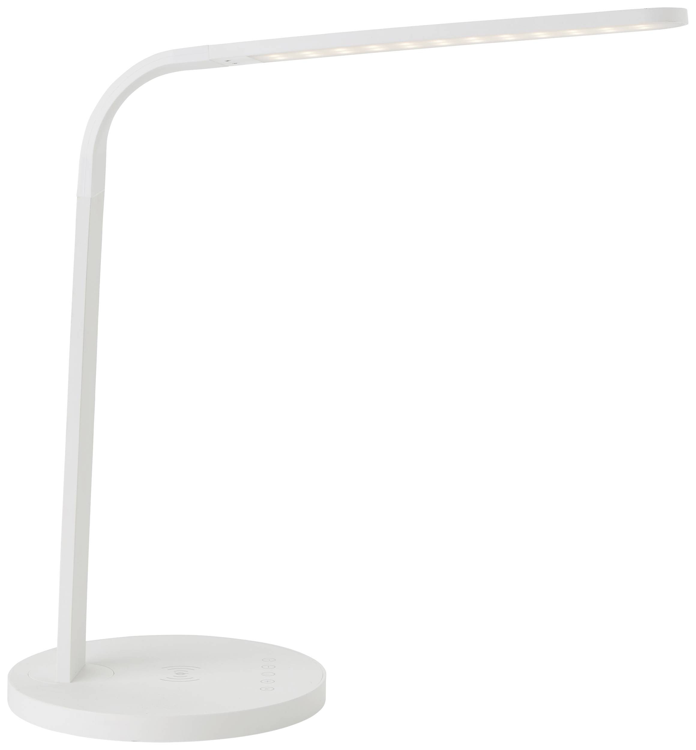 LED-Technik macht diese Leuchte langlebig und energiesparend. Mit dem integrierten Touchdimmer lässt sich die Helligkeit stufenlos dimmen. Die Lichtfarbe der LEDs lässt sich mittels der CCT-Technologie von warmweiß bis kaltweiß individuell je nach gewünschtem Ambiente wählen. CCT definiert die Farbtemperatur einer weißen LED und wird in Kelvin angegeben. Diese Tischleuchte verfügt über eine integrierte induktive Ladestation. Legen Sie einfach Ihr Smartphone, Ihre Kopfhörer oder andere Gadgets, die für kabelloses Laden geeignet sind, auf die gekennzeichnete Fläche. Diese 2-in-1-Funktion spart nicht nur Platz, da Sie keine zusätzliche Ladestation benötigen, sondern ist gleichzeitig auch noch sehr praktisch. So haben Sie immer alle Geräte voll aufgeladen und griffbereit - ohne dass ein Ladekabel notwendig ist.