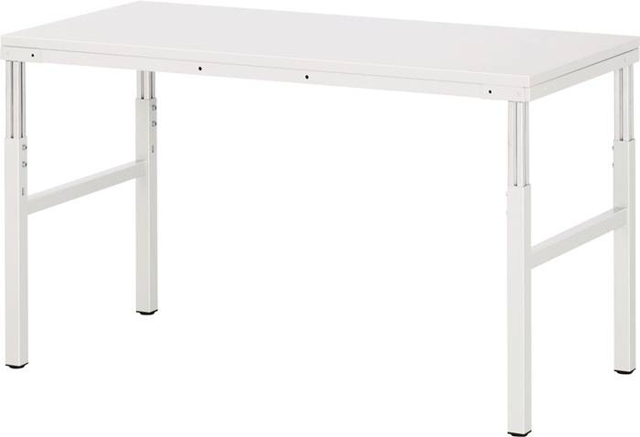 mit EGB-Arbeitsplatte Stärke 28 mm leitfähig melaminharzbeschichtet mit volumenleitfähigem Kern · Profilstahlrohr-Untergestell 45 x 45 x 2 mm mit Aluminiumprofilen 40 x 40 mm zur Einstellung der Arbeitshöhe · Tischhöhe stufenlos höhenverstellbar von 650-1000 mm, mit Niveauausgleich · umlaufender Rahmen zur Aufnahme der Arbeitsplatte · Tragfähigkeit 450 kg bei gleichmäßig verteilter statischer Flächenlast · hochwertige Pulverbeschichtung lichtgrau, RAL 7035