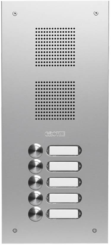 Durch das taktile Schaltverhalten der Taster sind diese Türstationen ideal für den Einsatz von Bus-Anlagen, nicht nur von Grothe, sondern auch von anderen Herstellern. Die patentierten Lautsprecheradapter bieten mit den getrennten Kammern sowie dem Wasserableitsystem eine optimale Akustik und den besten Schutz gegen Witterungseinflüsse.