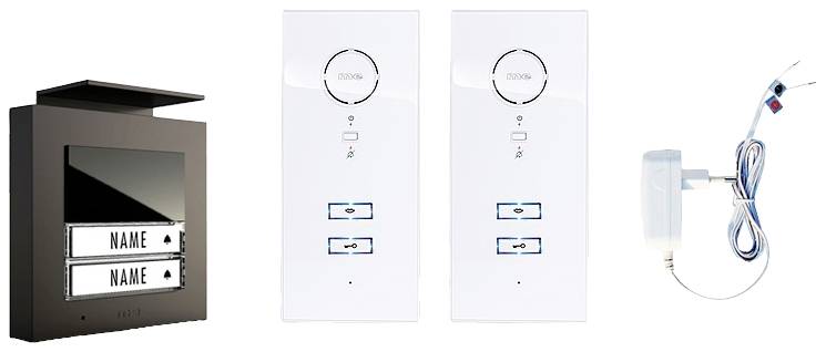 Promo-Komplettset aus Außenstation ADV-1020 A, 2 x Innenstation ADV-100 WW und Steckernetzteil ST-1000.