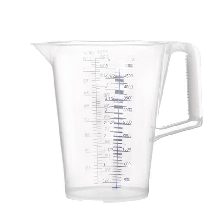 aus Polypropylen · auf jeder Messbecherseite eine erhabene, blau bedruckte Skala · ergonomischer Handgriff mit Rillen für besseren Halt · beständig gegen neutrale Medien, Öle, Säuren und Alkohol · BPA-frei · lebensmittelecht gem. (EU) Nr. 10/2011 und FDA § 21 CFR 177.1520Weitere technische Eigenschaften:· Temperaturbereich: -20 bis max. +100°C· Farbe: transparent