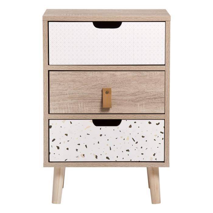 Schrank mit 3 Schubladen - Spanplatte mit Papierdekor und Basis aus massivem Gummibaumholz - OSLO.