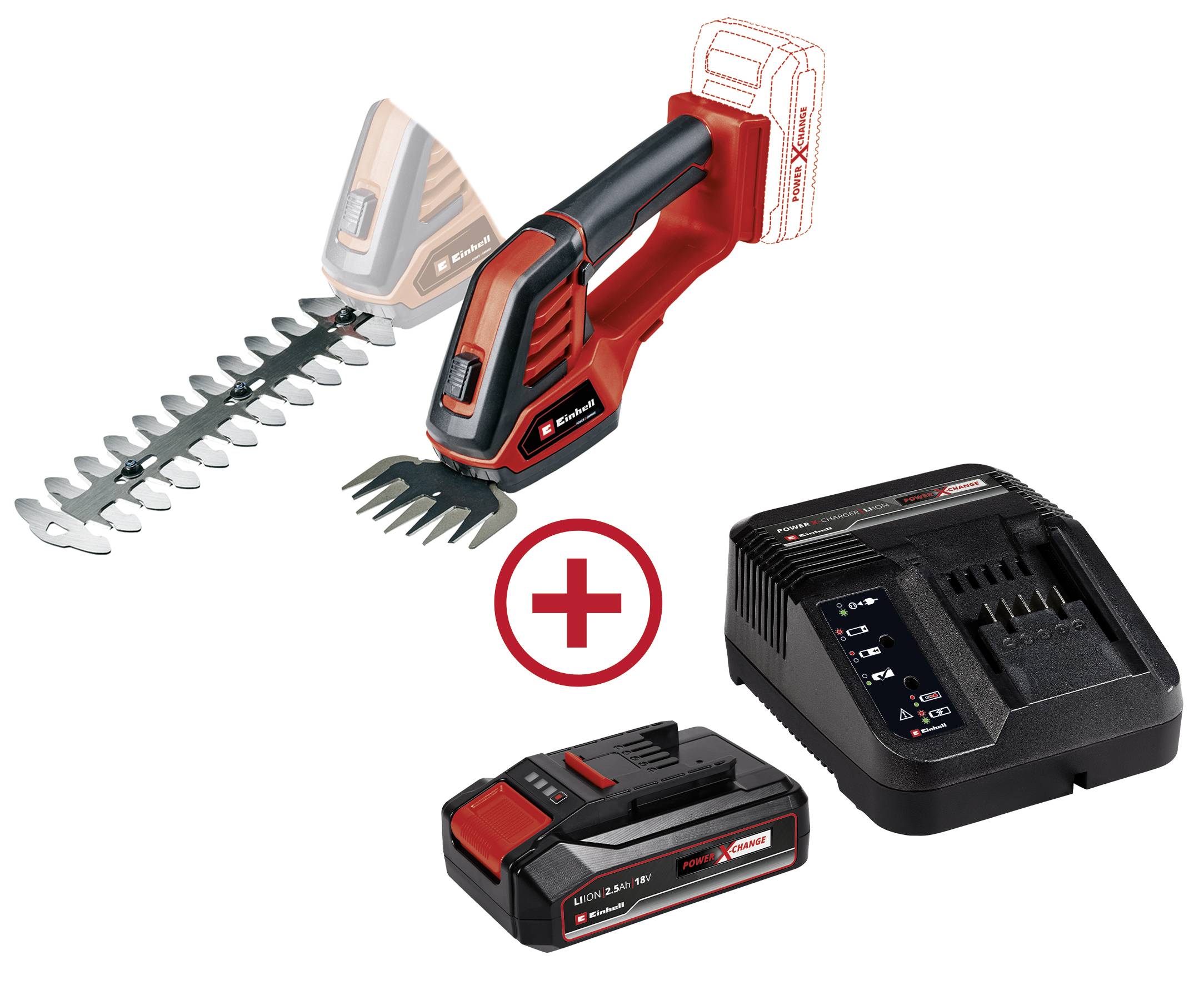 Die Einhell Akku-Gras- und Strauchschere GE-CG 18/100 Li-Solo ist ein leistungsstarkes Mitglied der cleveren Power X-Change-Familie. Das Akku-Gerät ist eine bequeme Alternative zu handgeführten Astsägen oder Gartenscheren. Sie ist außerdem leichter, geräuschärmer und flexibler einsetzbar als die benzinbetriebenen oder elektronischen Varianten und somit der ideale Helfer zum Stutzen, Formen und Ausdünnen von Sträuchern und Bäumen. Das Grasschneideblatt ist perfekt zur Pflege von Rasenkanten (100 mm) geeginet. Für die Hecken- und Buschpflege sind die lasergeschnittenen und diamantgeschliffenen Strauchscherenmesser ideal geeignet. Der Werkzeugwechsel erfolgt ganz einfach und werkzeuglos. Im Einsatz bietet der Softgrip perfekten Halt und Ergonomie bei jeder Bewegung. Das abgedeckte Getriebegehäuse schützt im Einsatz und bei der Säuberung vor Berührungspunkten mit Teilen, die mit Getriebeöl geschmiert sind. Zum Betrieb ist 1x 18 Volt PXC-Batterie notwendig.