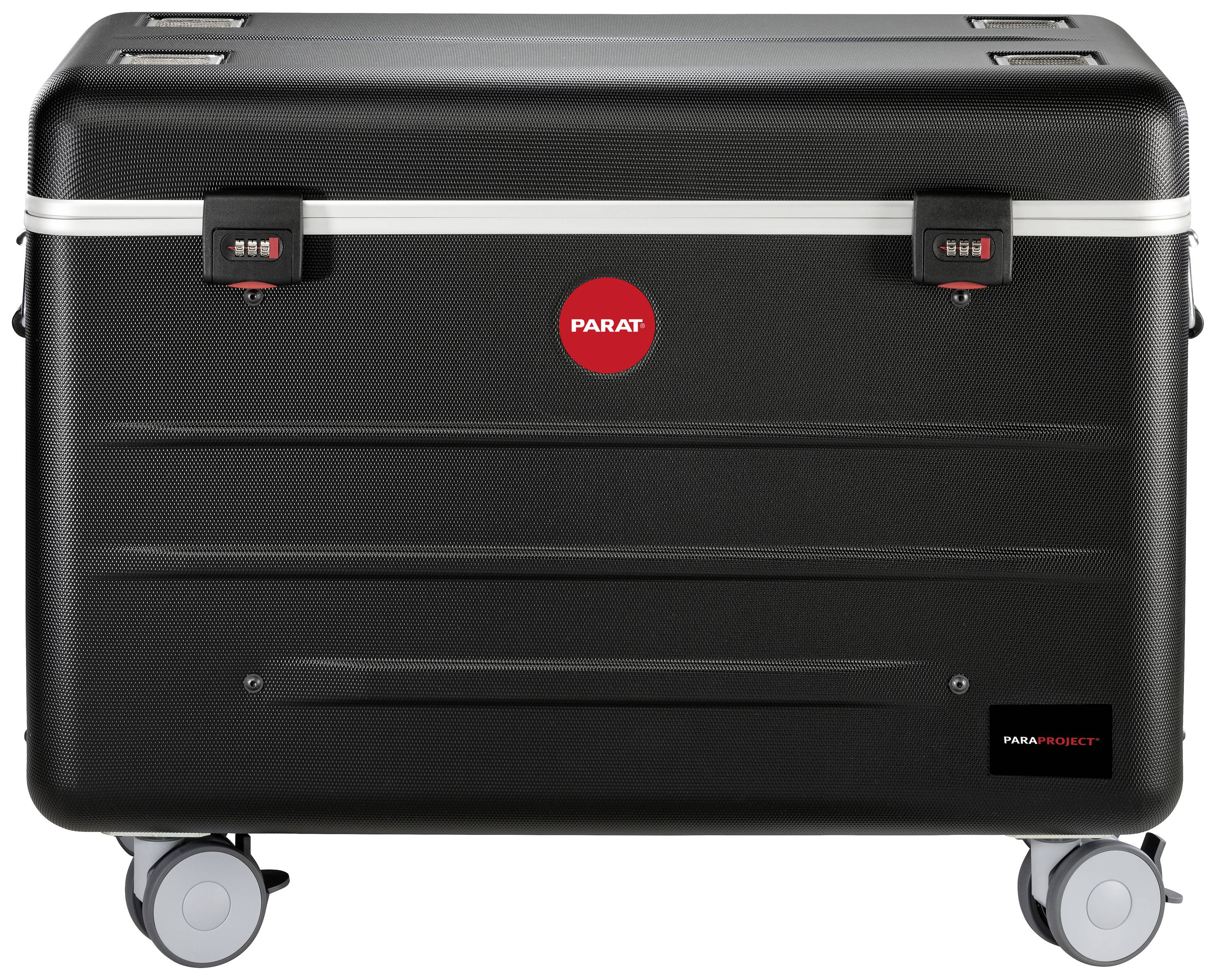 Der PARAPROJECT® Case i15 BASKET ist ein intelligenter Lade-, Synchronisations- und Transportsystemkoffer für iPads. Der Tabletkoffer ist mit drei Tablet-Körbchen den sogenanntem Baskets, ausgestattet. Jedes Körbchen fasst in separaten Slots bis zu fünf iPads bis 10,5". Die Baskets sind mit einem praktischen, klappbaren Tragegriff ausgestattet und können so komfortabel aus dem Case genommen und wieder eingesetzt werden. Sie eignen sich ideal für den Einsatz in Lerngruppen aus dem Gesundheits-, Industrie- und Bildungsbereich. Der PARAPROJECT® Case i15 BASKET lädt und synchronisiert bis zu 15 Endgeräte gleichzeitig über einen integrierten Multi-Charge Hub. Kleinteile, Netzwerkkabel und Stifte finden in den Staufächern des Kofferdeckels Platz. Zudem sorgt das hochwertige Trolleysystem mit feststellbaren Leichtlaufrollen und ausziehbarem Teleskopgriff für einen einfachen Transport des Tabletkoffers von A nach B. Der hochwertige Tabletkoffer aus X-ABS Kunststoff ist extrem robust. Integrierte Zahlenschlösser schützen den Inhalt vor ungewolltem Zugriff.