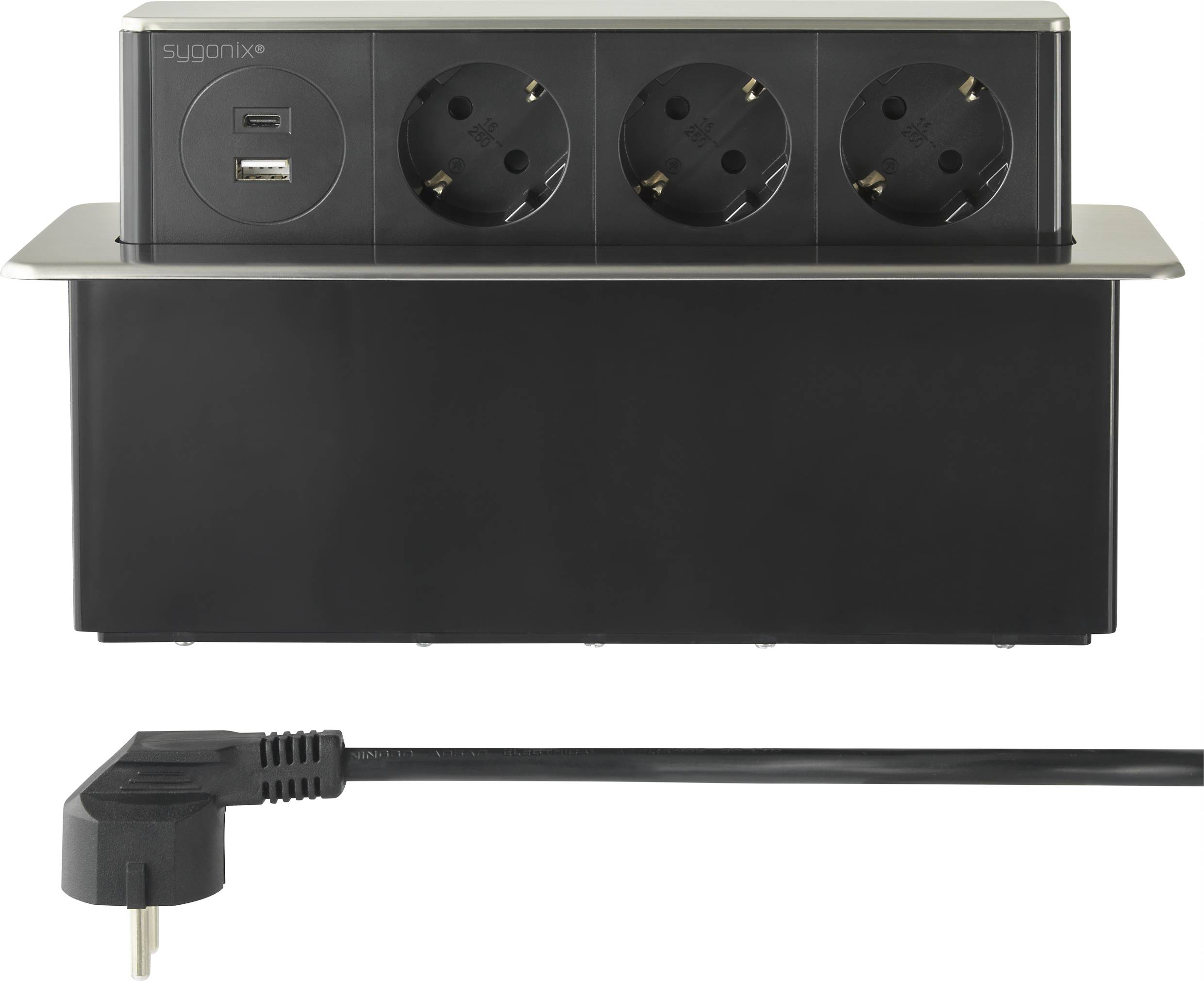 Sygonix SY-4780158 Einbau-Steckdosenleiste Edelstahl, Schwarz Schutzkontakt 1 St.