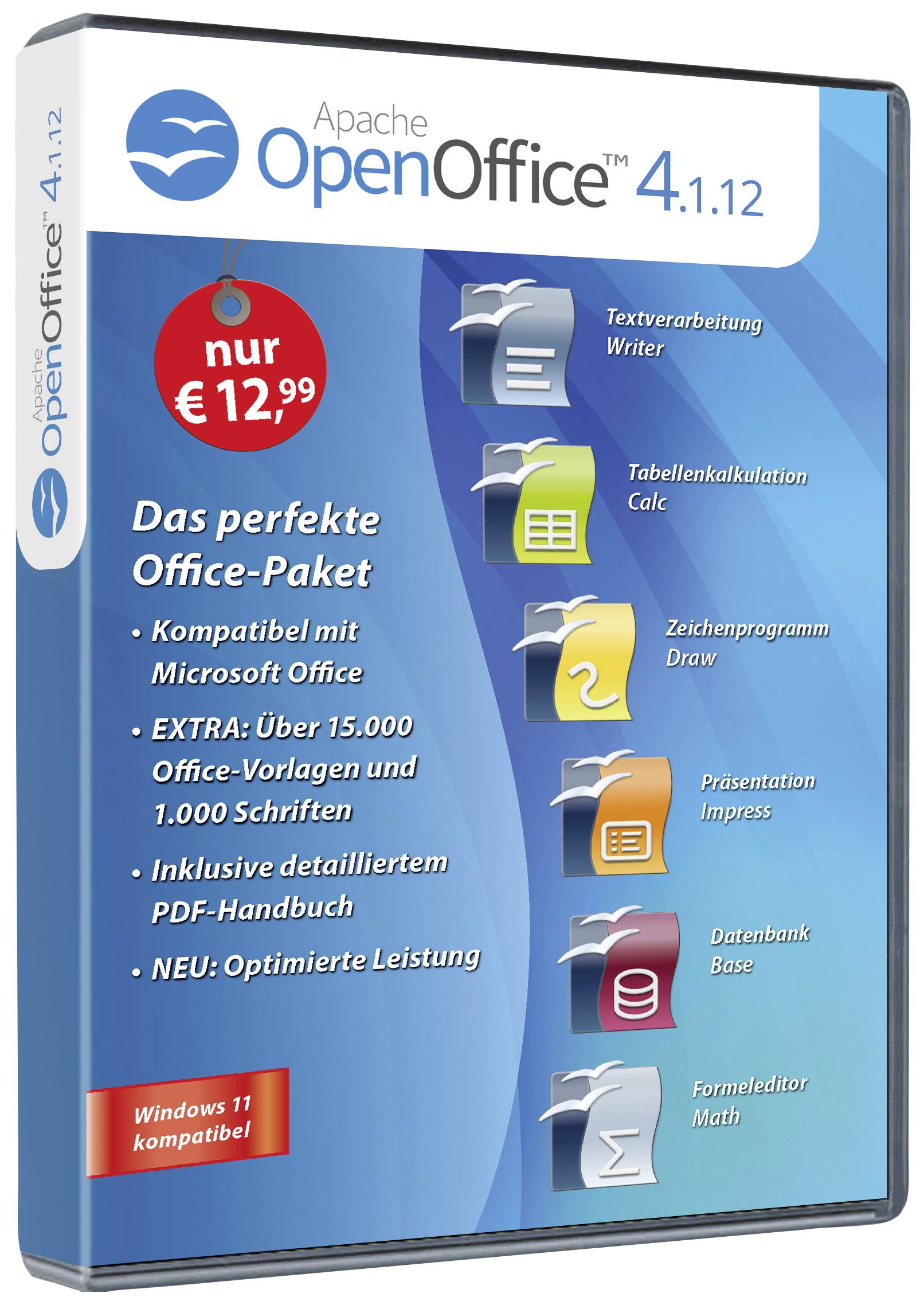 Apache OpenOffice 4.1.12 Standard Vollversion, 1 Lizenz Windows Office-Paket