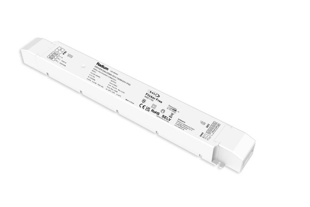 4 Kanal Konstantspannungsversorgung 24V für bis zu 150W LED-Last, steuerbar über DALI (DT6) oder DMX, für innen.