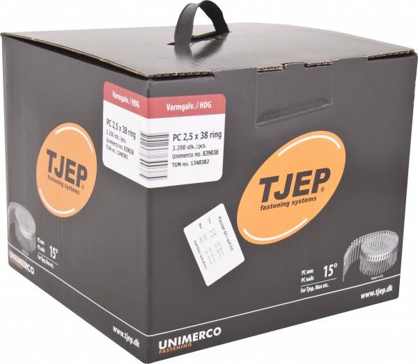 PC Coilnägel 2,5x38mm Ring feuerverzinkt 15° plast für Coilnagler Bostitch N75C-2-E 3,2M
