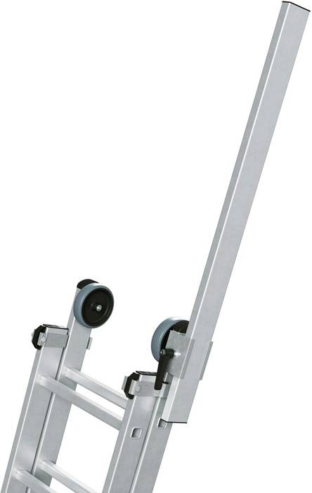Ausstiegsholm · klemmbar Passend für Leitern mit Holmhöhe 73 mm. Zum Einschieben für platzsparenden Transport.