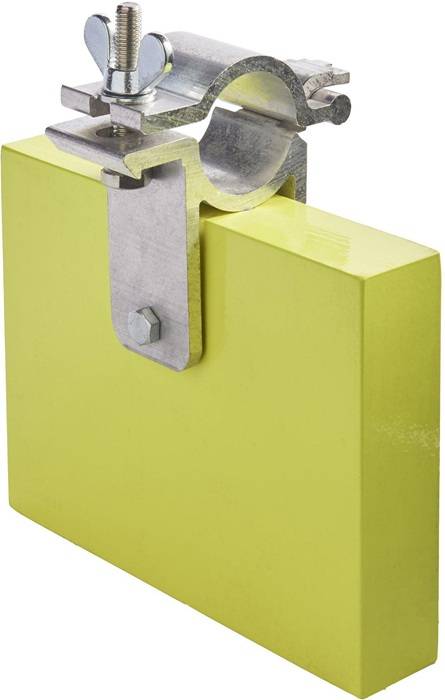 Ballastgewicht (Quader) für PaxTower Stahl · lackiert. Mit Schellen zur Befestigung an den Dreiecksauslegern. Farbe: Gelb.
