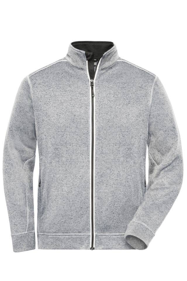 Men's Knitted Workwear Fleece Jacket - SOLID - Pflegeleichte Strickfleece-Jacke weiß/grau , Gr. XS