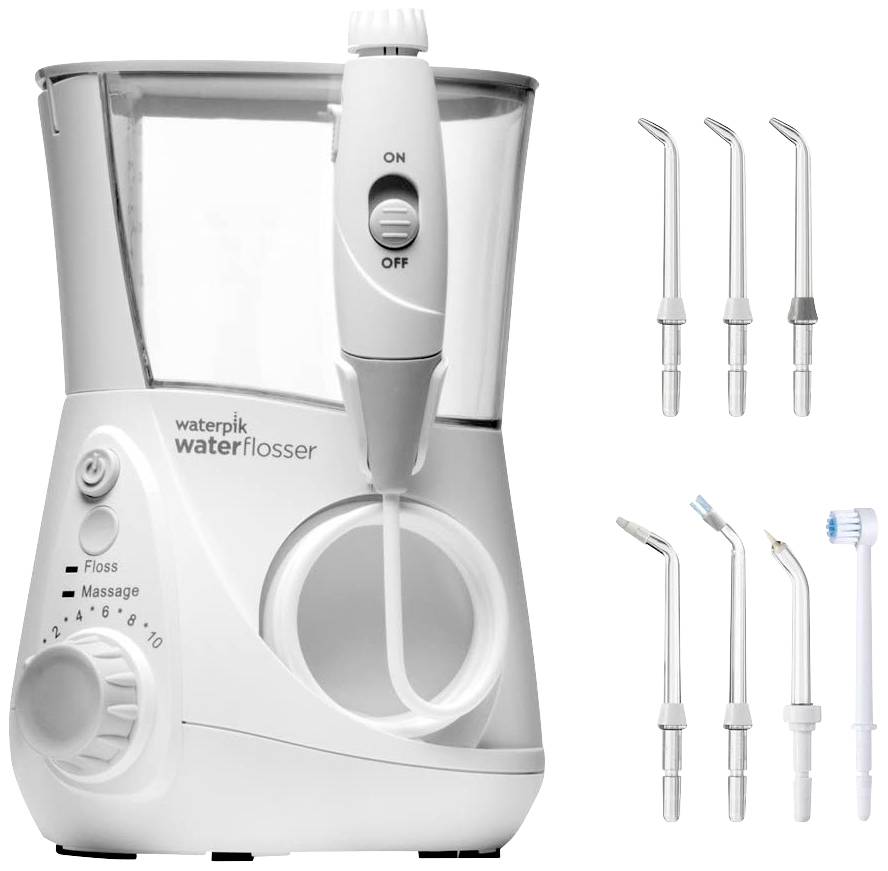Entfernt bis zu 99,9 % des Zahnbelags auf den behandelten Bereichen und ist im Vergleich zu Zahnseide um bis zu 50 % effektiver bei der Verbesserung der Zahnfleischgesundheit. Dieses Modell umfasst 7 Düsenaufsätze, einen praktischen 1-Minuten-Timer mit 30-Sekunden-Intervallen für eine gründliche Reinigung aller Bereiche, eine Ein/Aus-Taste am Griff, die zum Pausieren des Wasserstrahls dient und eine einhändige Bedienung ermöglicht