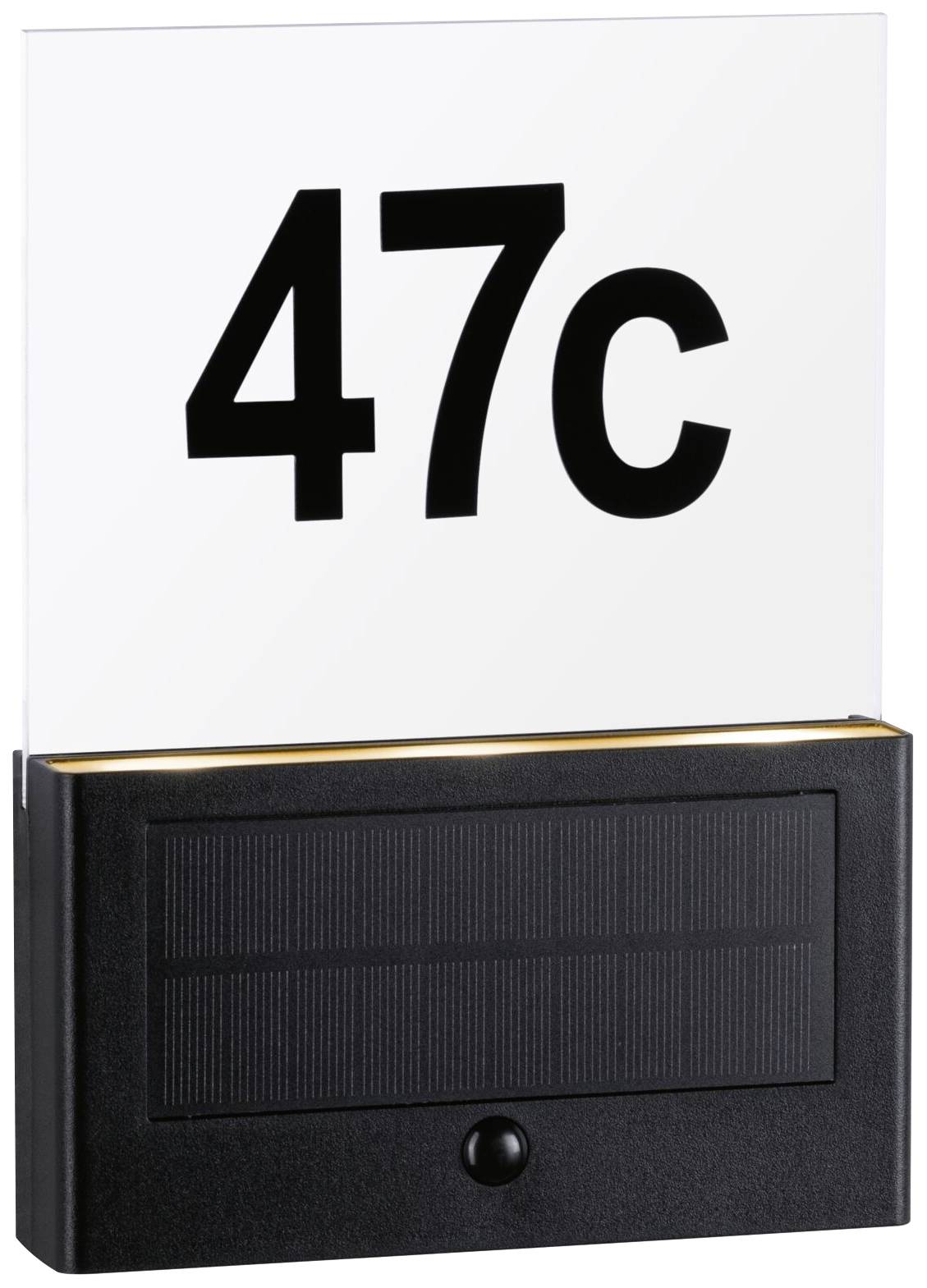 Die Hausnummer wird mit 20 % der Lichtleistung nach Einbruch der Dämmerung betrieben.