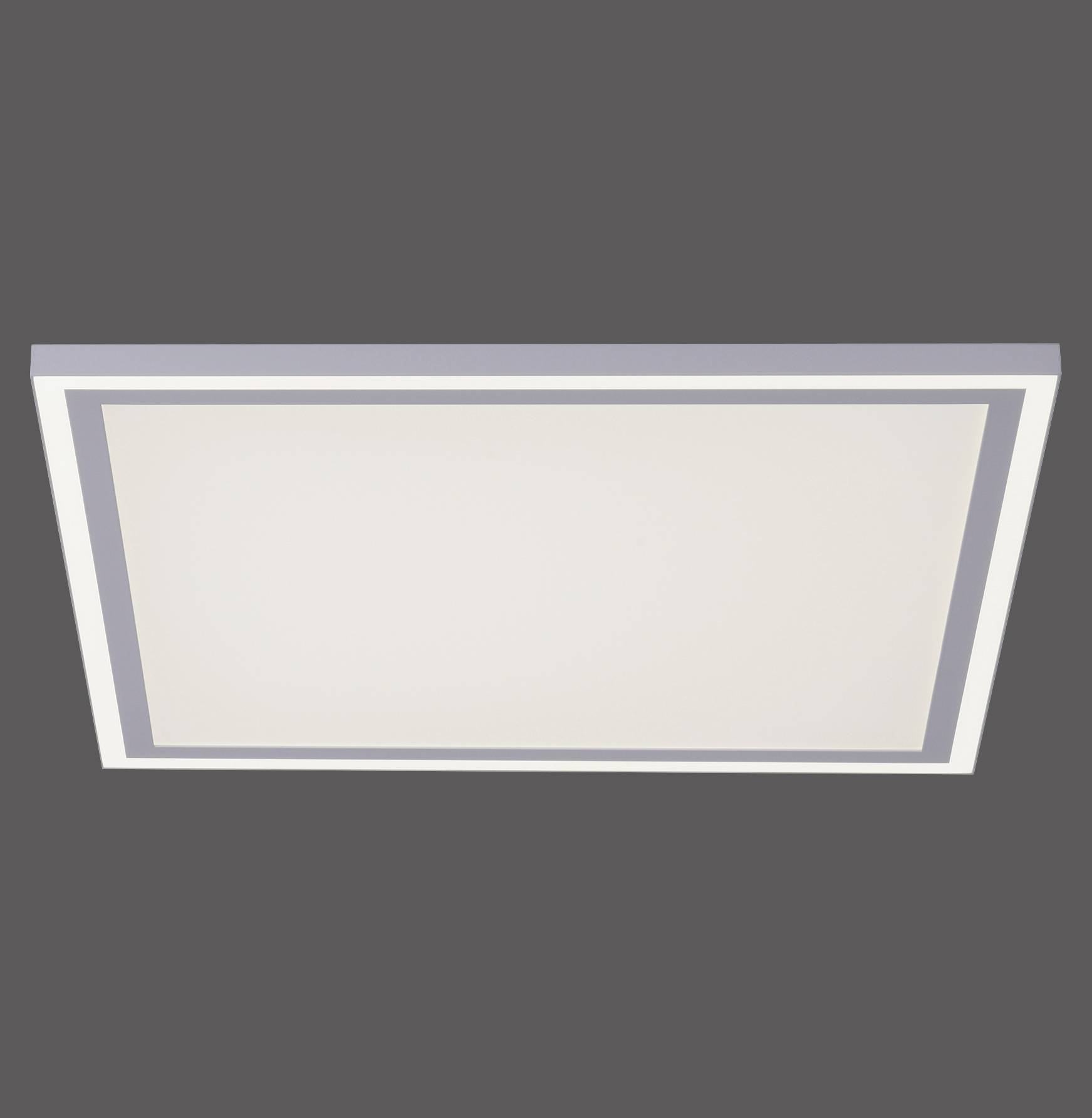 Das quadratische LED Deckenpanel EDGING überzeugt mit schlichter Eleganz. Die Deckenleuchte in weiß wird mit zwei LED-Leuchtmitteln geliefert. Dank dem integriertem CCT-Lichtmanagement können diese Leuchtmittel in der Farbtemperatur von warmweiß (2700 Kelvin) bis tageslichtweiß (5000 Kelvin) verstellt werden. Ebenso kann man die Lichtstärke ganz nach Belieben regulieren. Die Steuerung der Funktionen erfolgt per mitgelieferter Funkfernbedienung. Die letzten Einstellungen der Leuchte werden durch die Memoryfunktion solange gespeichert bis man eine neue Veränderung vornimmt. Zusätzlich hat die Leuchte auch einen Serienschalter verbaut, der dazu dient dass man die Lichtquellen auch über den normalen Lichtschalter bedienen kann. Schalten Sie die Leuchte zum ersten Mal an und aus, erstrahlt die ganze Leuchte, wenn Sie die Leuchte zum zweiten Mal an- und ausschalten, erstrahlt nur das Außenrand der Leuchte und beim dritten an- und ausschalten leuchtet nur der innere Teil der Leuchte. Die Deckenleuchte hat eine Länge und Breite von 46,4 cm und eine Abhängung von 6,2 cm.