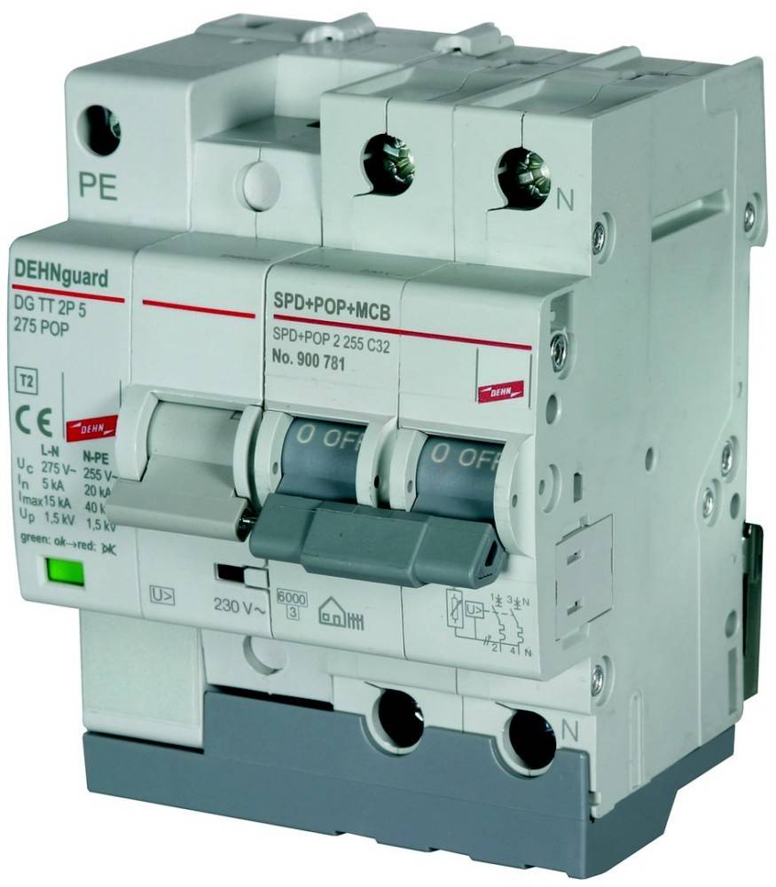 . Zum Schutz von Niederspannungs-Verbraucheranlagen vor transienten und temporären Überspannungen (SPD+POP). Zum Einsatz im Blitz-Schutzzonen-Konzept an Schnittstellen 0B-1 und höher.