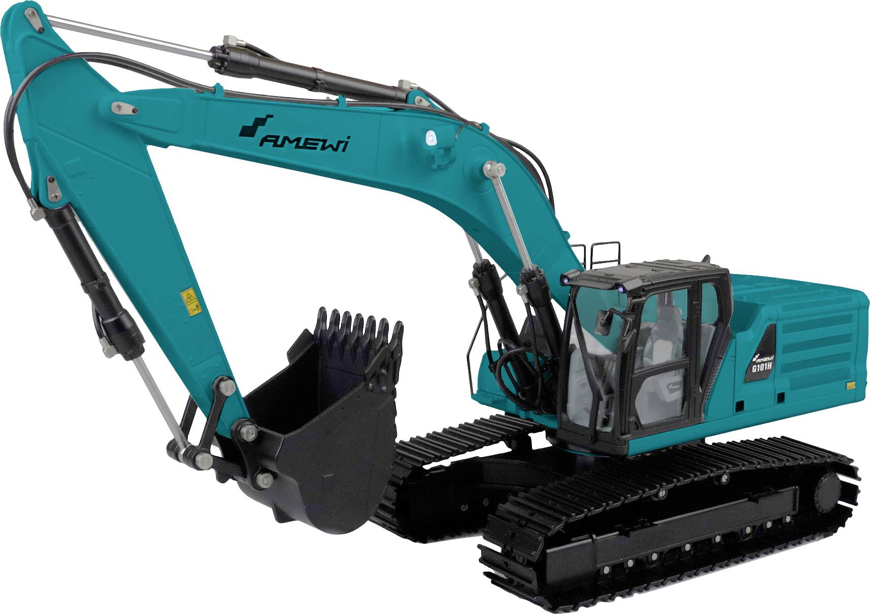 Exklusiver hochwertiger Kettenbagger im Maßstab 1:16 als RTR Modell im exklusiven Amewi Design mit 2,4GHz Sender, Akku, Ladegerät und allem Zubehör, was für den Betrieb erforderlich ist (außer Batterien für den Sender).