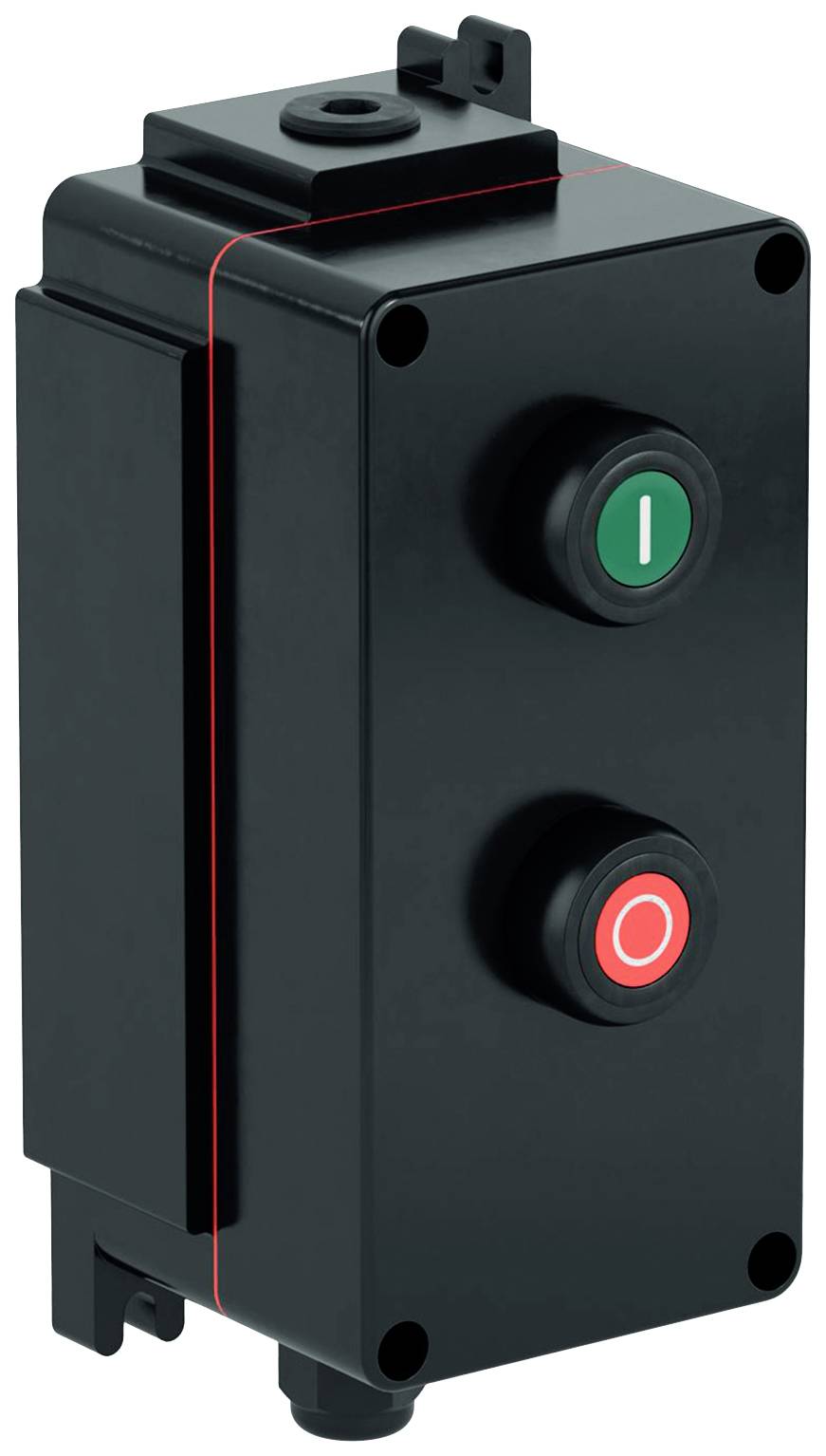 Gehäusematerial: glasfaserverstärktes Polyester (GFP); Gehäusegröße (HxBxT): 220 x 110 x 101 mm; Finish: Eigenfarbe schwarz; Gehäusedeckel: komplett abnehmbar; Dichtung: Silikonband, einteilig; Gas-Explosionsschutz:; Ex II 2 G Ex de IIC T6, T5, T4 Gb; Staub-Explosionsschutz:; Ex II 2 D Ex tb IIIC T80 °C, T95 °C, T130 °C Db; Umgebungstemperatur: -40°C bis +40°C, +55°C; Schutzart: IP66; Zertifizierungen: ATEX, IECEx; weitere auf Anfrage; Bestückt mit:; 1x Drucktaster grün (PG), Beschriftung "I"; mit Kontaktblock 1x Schließer / 1x Öffner (M); 1x Drucktaster rot (PR), Beschriftung "0"; mit Kontaktblock 1x Schließer / 1x Öffner (M); 1x M20 Blindverschraubung schwarz, Polyamid, in Oberseite A; 1x M20 Kabelverschraubung schwarz, Polyamid, in Unterseite B; Kontaktblöcke: Bodenbefestigung; Technische Daten Kontaktblock (M):; 250 V AC - 16 A - AC12; 250 V AC - 10 A - AC15; 110 V DC - 0,5 A - DC13; 24 V DC - 1 A - DC13