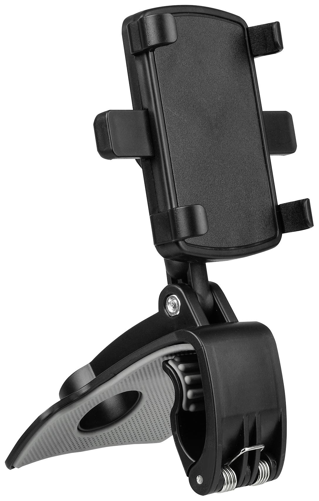Die Kfz-Smartphonehalterung dient zur Befestigung von Mobilfunktelefonen oder Navigationsgeräten am Armaturenbrett, Sonnenblenden oder Innenspiegeln von Personenkraftwagen.