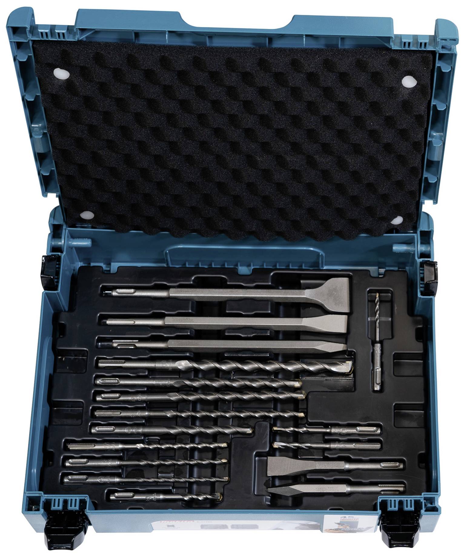 Das 17-teilige Set besteht aus 12 Hammerbohrern und 5 Meißeln. Alle verfügen über eine SDS-PLUS-Aufnahme zum schnellen und werkzeuglosen Wechsel. Ausgeliefert wird das Set in einem MAKPAC Größe 1. Eine zweite Koffereinlage schafft eine zweite Ebene und dient dem ordentlichen und sicheren Verwahren von weiteren Zubehörartikeln.