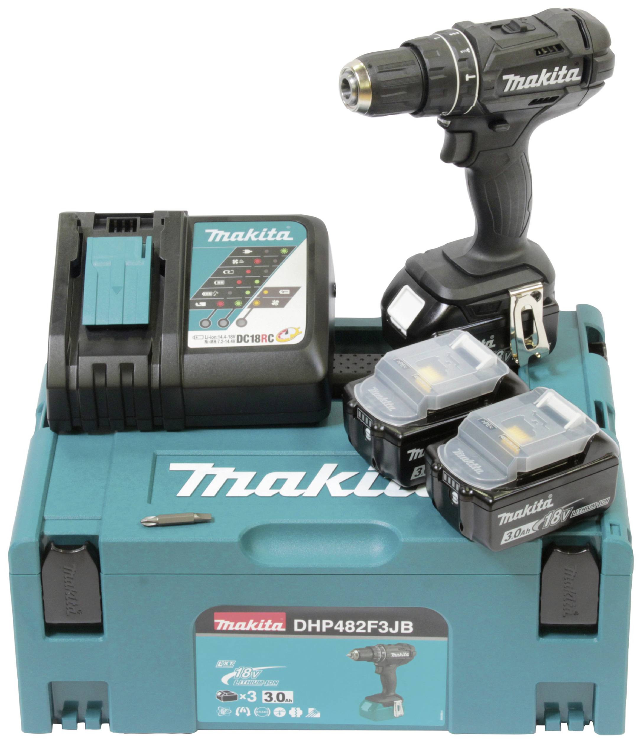 Makita DHP482F3JB 2-Gang-Akku-Schlagbohrschrauber inkl. Ladegerät, inkl. 3. Akku