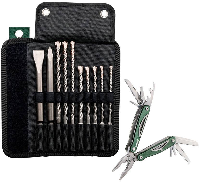 SDS-plus Pro 4-Bohrer-/ Meißel-Rolltasche, 10-teilig, Set (inkl. Multitool). Höchste Bohrgeschwindigkeit durch Reduzierung der Reibung und verbesserte Schlagübertragung durch spezielle Schneidengeometrie auf dem meißelförmigen Bohrkopf␍. Stabile und langlebige Zentrierspitze für punktgenaues Anbohren. Power Breakers verursachen Mikrorisse im Material für spürbar schnelleren Bohrfortschritt. Vergrößerte Armierungsphasen verringern die Wahrscheinlichkeit des Verhakens bei Armierungstreffern. Großvolumige 2-spiralige Wendelgeometrie mit Kernverstärkung für schnelle Förderung des Bohrmehls und maximale Bruchsicherheit. Zum Einsatz in Beton, Mauerwerk, Naturstein, Granit.