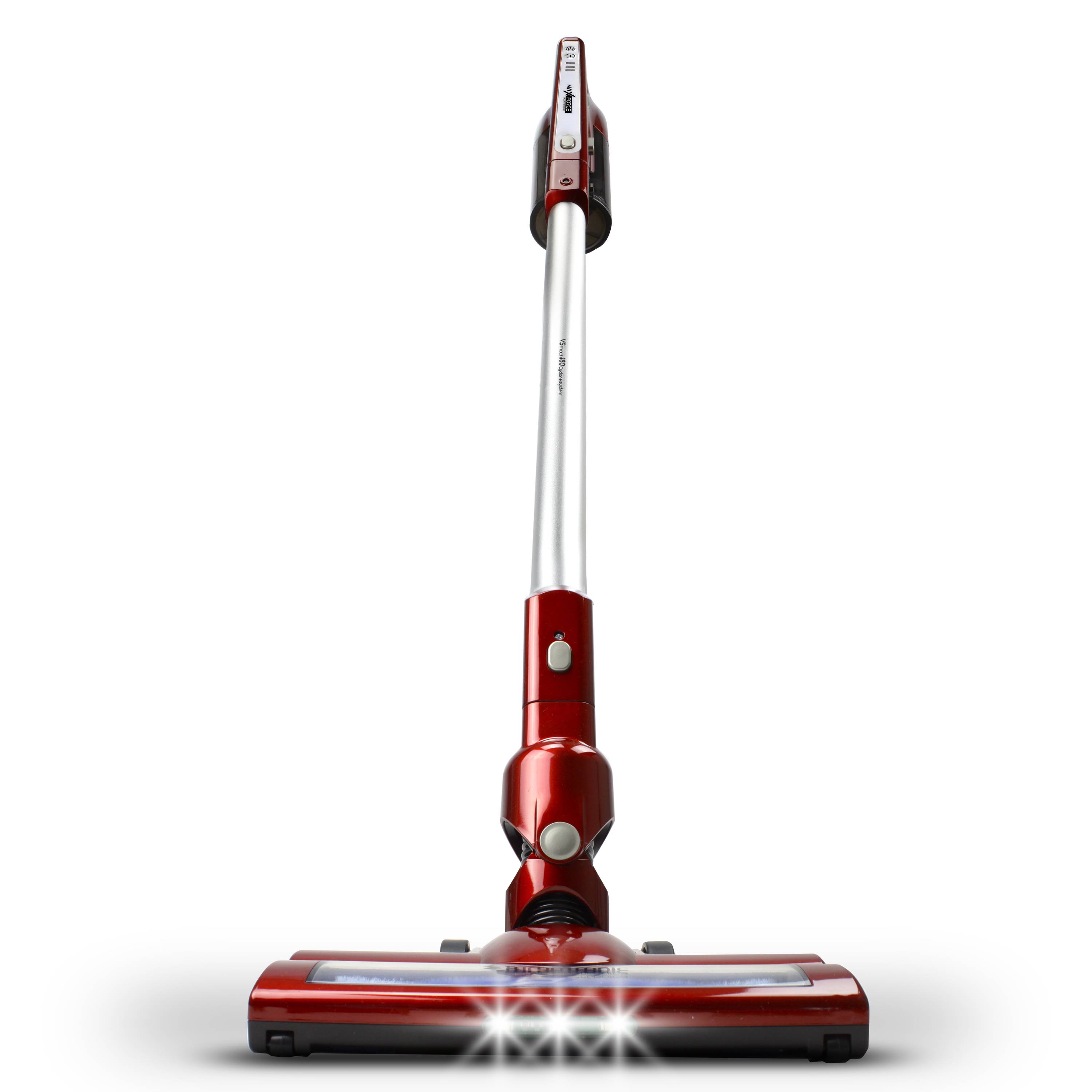 2in1 Akkustaubsauger mit auswaschbarem HEPA-Filter, rotierender Bodenbürste, 2 Geschwindigkeitseinstellungen, LED-Beleuchtung in der Bürste, Ladestation mit Wandhalterung, hoher Saugleistung inkl. Matratzenbürste und Fugendüse mit Staubpinsel - die Düsen können direkt am Handgriff befestigt werden und schon haben Sie einen handlichen Handstaubsauger zur Verfügung!