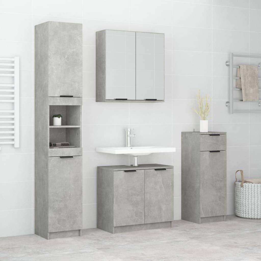 vidaXL 4-tlg. Badmöbel-Set Betongrau Holzwerkstoff