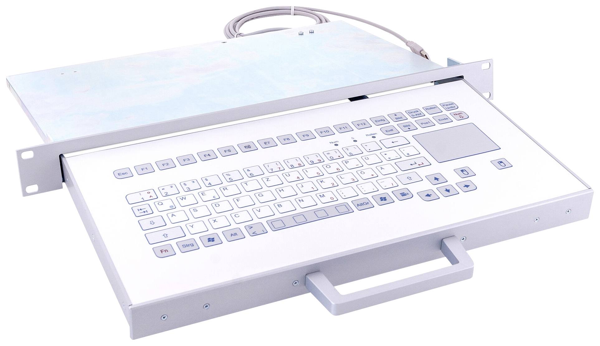 GETT TKS-088c-TOUCH-SCHUBL-USB-DE Kabelgebunden Tastatur Deutsch, QWERTZ Weiß IP65, Integriertes Touchpad, 19" Anwendungen