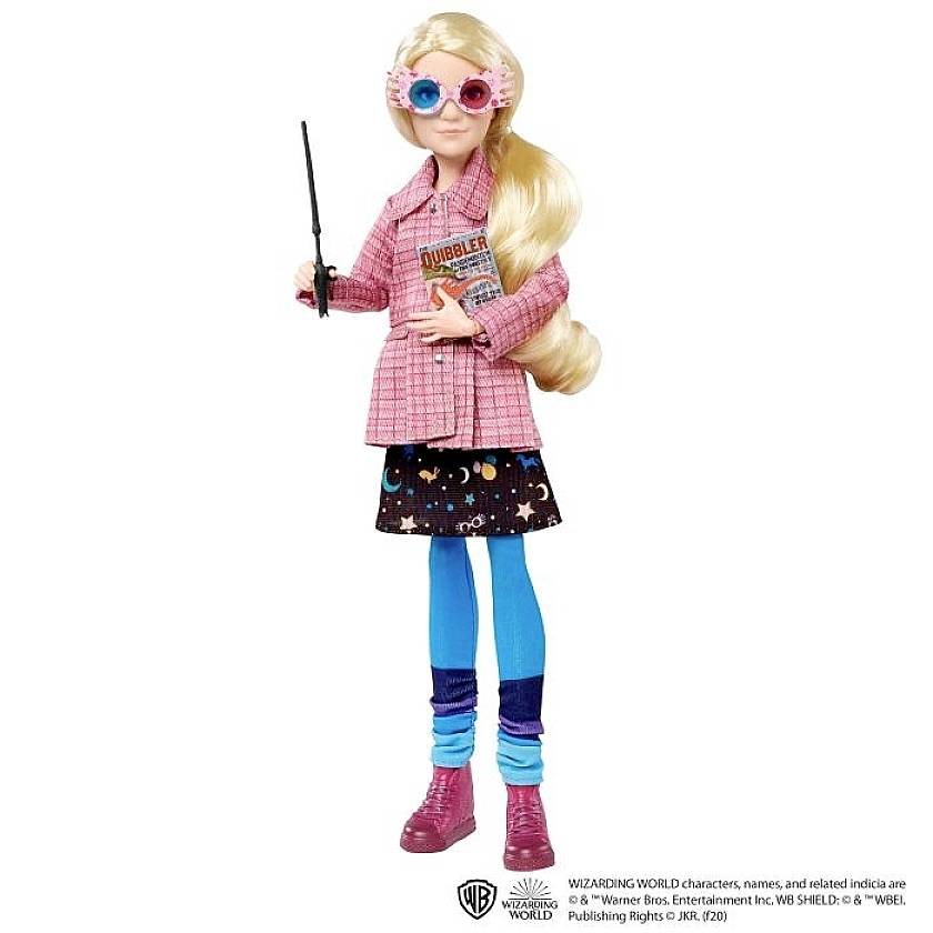 Diese von den Filmen inspirierte Puppe zaubert Harry Potter und seine Freunde zurück nach Hogwarts! Fans und Sammler können ihre Lieblingsszenen nachspielen oder sich eigene actiongeladene Geschichten mit der Luna Lovegood-Puppe ausdenken. In ihrem pinkfarbenen Tweed-Mantel, dem exzentrischen Rock sowie Strumpfhose und Sneakern sieht sie genauso aus wie die beliebte Figur aus den Harry Potter-Filmen. Mit originalgetreuem Zubehör wie dem Quibbler, ihren berühmten Spectrespecs und einem persönlichen Zauberstab, den sie tatsächlich halten kann, ist diese Luna-Puppe ihrem Vorbild zum Verwechseln ähnlich. Sie lässt sich an Hals, Schultern, Hüfte, Knien, Ellbogen und Handgelenken bewegen und sich immer wieder neu magisch in Szene setzen. Fans und Sammler werden es lieben, ihre Lieblingsmomente mit den von den Filmen inspirierten Puppen nachzuspielen! Mit weiteren Harry Potter Puppen und Spielzeugen können Fans ab 6 Jahren eine magische Welt entstehen lassen, die zu eigenen, fantasievollen Geschichten anregt. Alle Artikel separat erhältlich. Abweichungen in Farbe und Gestaltung vorbehalten.